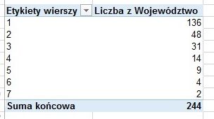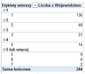 Jeśli chcemy się dowiedzieć, ile jest rodzin z piątką i większą liczbą dzieci, wystarczy zwinąć utworzone automatycznie pole Grupuj1, klikając ikonkę z minusem.