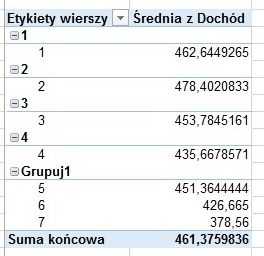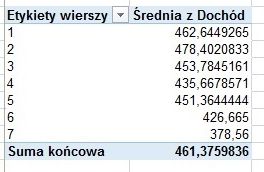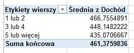 Umieszczając w polu WARTOŚCI dochód, możemy łatwo obliczyć średni dochód w rodzinach z odpowiednio pogrupowaną liczbą dzieci.
