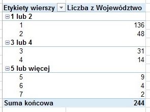 Ponieważ rodziny z liczbą dzieci przekraczającą czwórkę zdarzają się rzadko, można się zastanowić, czy nie wprowadzić jednej kategorii pod względem liczby dzieci: pięcioro i więcej, a następnie dokonywać wszelkich podsumowań bez rozróżnienia rozróżnienia na rodziny z piątką, szóstką czy siódemką dzieci. Jak w łatwy sposób osiągnąć ten efekt w oparciu o tabelę przestawną?