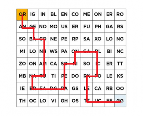 Zad. 1. W gorącym okresie przedświątecznych zakupów przejdź przez sklepowy labirynt nieprzerwaną linią, wkładając do koszyka wszystkie produkty spożywcze. Ich angielskie nazwy ukryte są na polach sąsiadujących bokami. Można poruszać się w prawo i lewo oraz w górę i w dół. Wejście do sklepu znajduje się na polu żółtym, a kasa - na niebieskim.