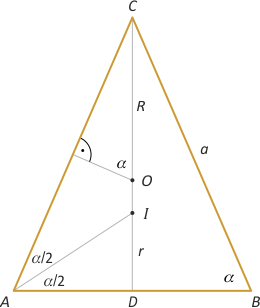 Zad. 4. (wolna amerykanka) Znajdź kąt przy podstawie trójkąta równoramiennego ABC, wiedząc że stosunek promienia okręgu wpisanego w ten trójkąt do promienia okręgu opisanego na tym trójkącie wynosi 3/8.