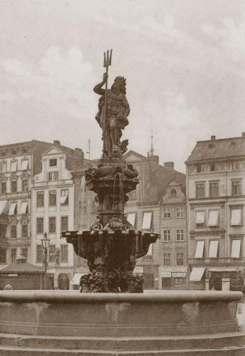 Zad. 3. Barokowa fontanna Neptuna (nazywana Gabeljürge, czyli Jerzy z widłami) stała na Nowym Targu przed obecnym budynkiem Urzędu Miejskiego. Została zniszczona w podczas działań wojennych w 1945 roku. Jej szczątki zaginęły, ale w 2010 roku pozostałości fontanny zostały odkopane przez archeologów podczas prac poprzedzających budowę podziemnego parkingu.
