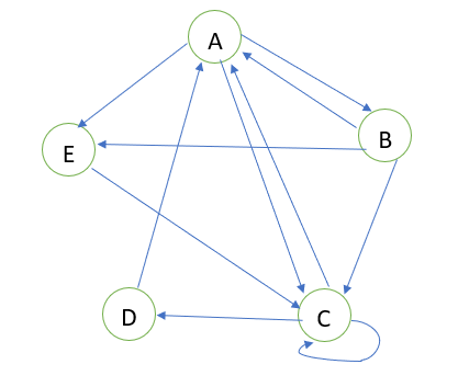 B) graphB = [('A', 'B'), ('A', 'C'), ('A', 'E'), ('B', 'A'), ('B', 'C'), ('B', 'E'),