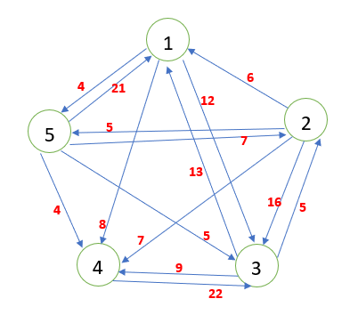 D) macierz sąsiedztwa z wagami - kwadratowa macierz, w której liczby różne od zera wskazują, między którymi wierzchołkami grafu są połączenia i jakie mają one rangi (np. długości).