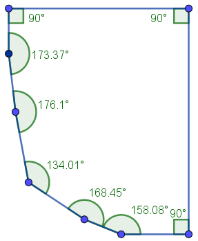 Gdyby ośmiokąt wypukły miał 4 kąty proste, to suma czterech pozostałych kątów wynosiłaby 1080°–4·90° = 720°, ale 720 = 180·4, czyli te pozostałe kąty musiałyby być albo wszystkie półpełne, albo niektóre z nich musiałyby być wklęsłe, co przeczy temu, że ośmiokąt jest wypukły. Ośmiokąt wypukły może mieć co najwyżej trzy kąty proste, np. jak na rysunku poniżej.