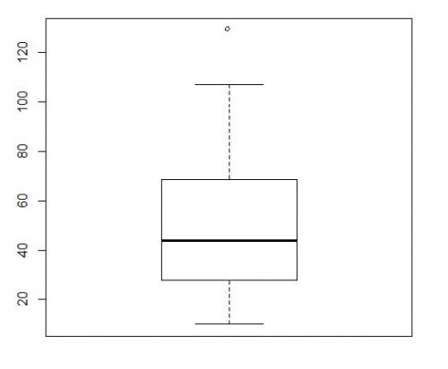 [q1-1,5iq , q3+1,5iq] = [29-1,5·38,25 , 67,25+1,5·38,25] = [-28,375 , 124,625]