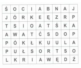 Zad. 2. Z rzędów poniższego diagramu wykreśl terminy geometryczne, omijając niektóre litery, które utworzą rozwiązanie.