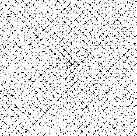 Na rysunku przedstawiono spiralę Ulama rozmiaru 200×200 po usunięciu liczb złożonych.