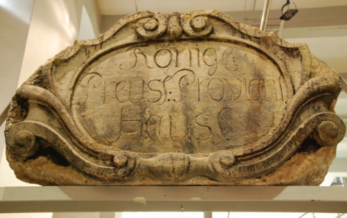 Zad. 3. Na odwrotnej stronie tympanonu z poprzedniego zadania widnieje nieco dziwny napis: "magazyn prowiantu królów pruskich". Jak to wytłumaczyć?