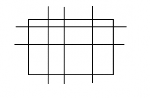 Zad. 2. Kartkę papieru dzielimy na prostokąty za pomocą zaginania prostych poziomych i pionowych lub tylko pionowych (rysunek przedstawia przykładowy podział podział na 12 prostokątów przez zagięcie 5 prostych). Jaka liczba zagiętych prostych pozwoli uzyskać podział na: