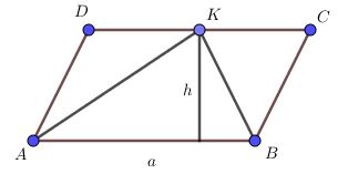 Zad. 3. Pole równoległoboku ABCD wynosi 72 cm2. Punkt K leży na boku CD. Ile wynosi pole trójkąta ABK?