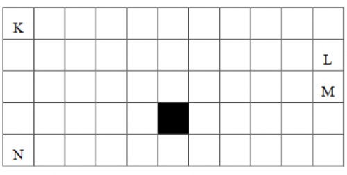 c) z kwadratu N do kwadratu M, jeśli nie wolno przejść przez czarny kwadrat?