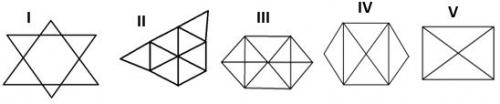 Zad. 1. Mógł narysować wszystkie poza V. Ta figura ma 4 punkty, w których schodzi się nieparzysta liczba linii. Pozostałe figury albo takich punktów nie mają (kreska, która wchodzi do danego punktu ma zawsze którędy wyjść) , albo mają takie punkty tylko dwa (jeden jest punktem startowym, a drugi końcowym).