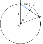 Zad. 1. Zanim wprowadzono miarę kąta posługiwano się sinusem kąta. Dokładniej był to podwojony sinus połowy kąta, mierzony jako długość cięciwy wyznaczającej kąt środkowy w okręgu jednostkowym (patrz rysunek).