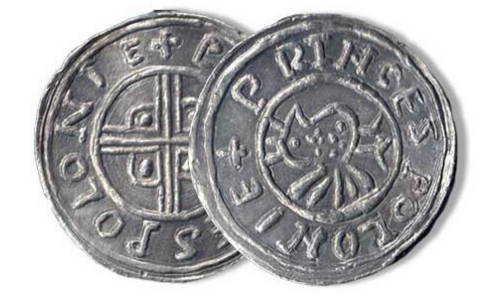 Zad. 1. Najstarsza polska moneta została wybita między rokiem 970 a 992. Był to denar nazywany „Princes Poloniae” wyemitowany przez Mieszka I. Napis „Princes Poloniae” (książę polski) widniał po obu stronach. Była to pierwsza moneta z nazwą naszego kraju i najstarszy zapis jego nazwy pochodzący z ziem polskich. Denary bito na ziemiach Polskich do czasów króla Zygmunta III Wazy.