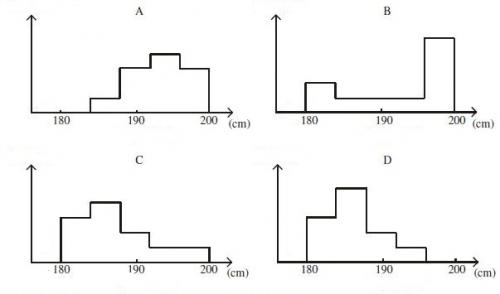 Zad. 2. (1 punkt) Zbadano wzrost zawodników czterech drużyn siatkówki: A, B, C i D i narysowano dla nich histogramy: