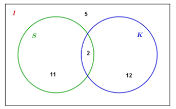 Zad. 1. Pięciu uczniów uprawia inne dyscypliny niż siatkówka i koszykówka, zatem 30–5 = 25 uczniów uprawia co najmniej jedną z tych dwóch dyscyplin. Z drugiej strony 13+14 = 27, więc dwóch uczniów uprawia obie dyscypliny. Tylko siatkówkę uprawia 13–2 = 11 uczniów.