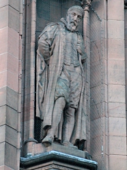 Figura Euklidesa - fragment studni Schöner Brunnen na Rynku w Norymberdze, Niemcy | Figura Euklidesa na dziedzińcu Muzeum Historii Naturalnej w Oxfordzie, Wielka Brytania | |